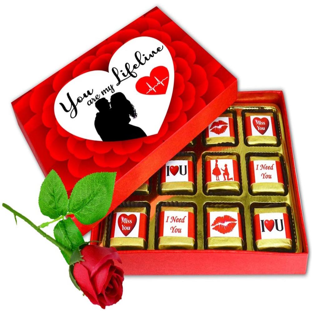 - It combines the timeless symbols of love—chocolates and a rose—into a single, elegant package.