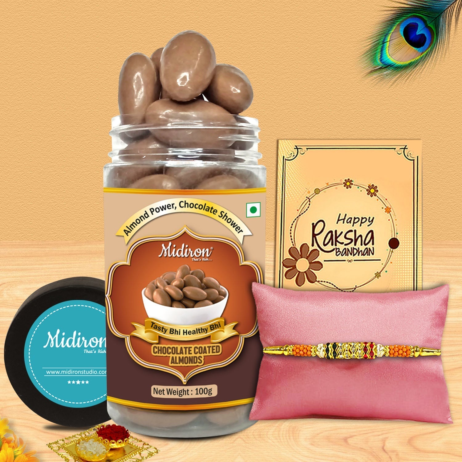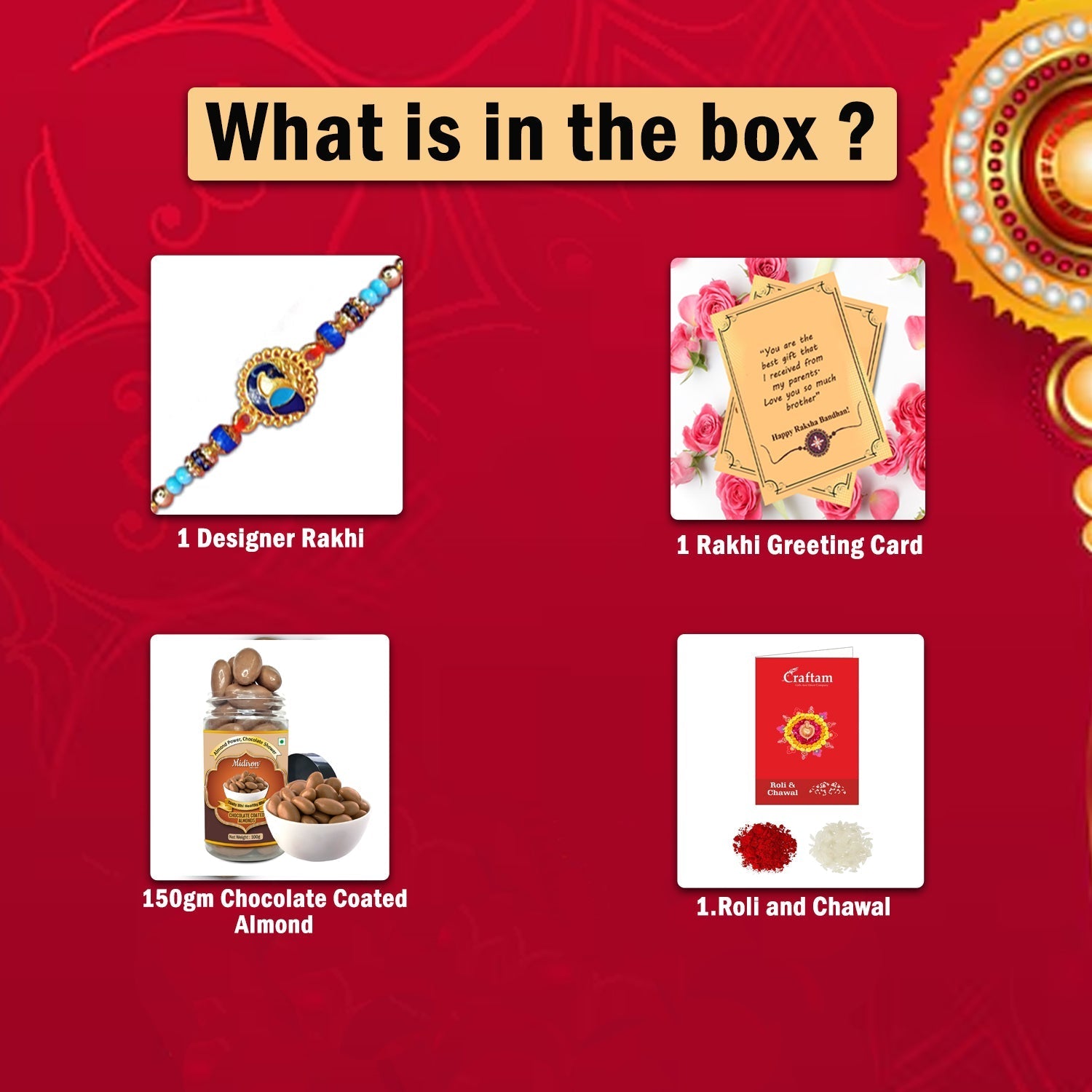 Rakhi is not just a thread – it’s a promise of protection, a symbol of love, and a celebration of siblinghood. This Raksha Bandhan, go beyond the ordinary and choose a gift combo that reflects your affection and thoughtfulness. The inclusion of gourmet chocolate almonds makes this combo both festive and indulgent, appealing to brothers of all ages.