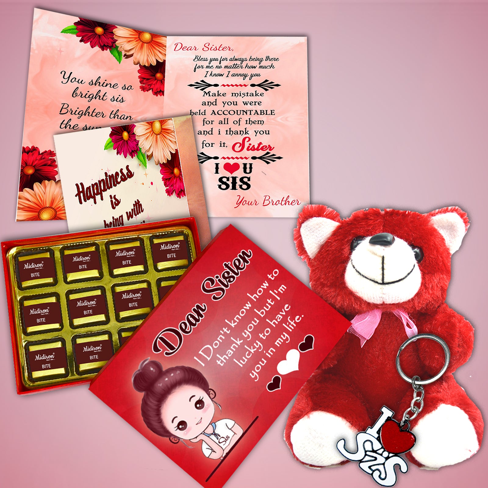 Whether your sister is playful, practical, or somewhere in between, this combo suits a wide range of personalities. The teddy adds cuteness, the chocolate adds sweetness, the keychain brings functionality, and the card provides emotional value. It’s the kind of versatile gift that works for school girls, college students, working women, or married sisters.