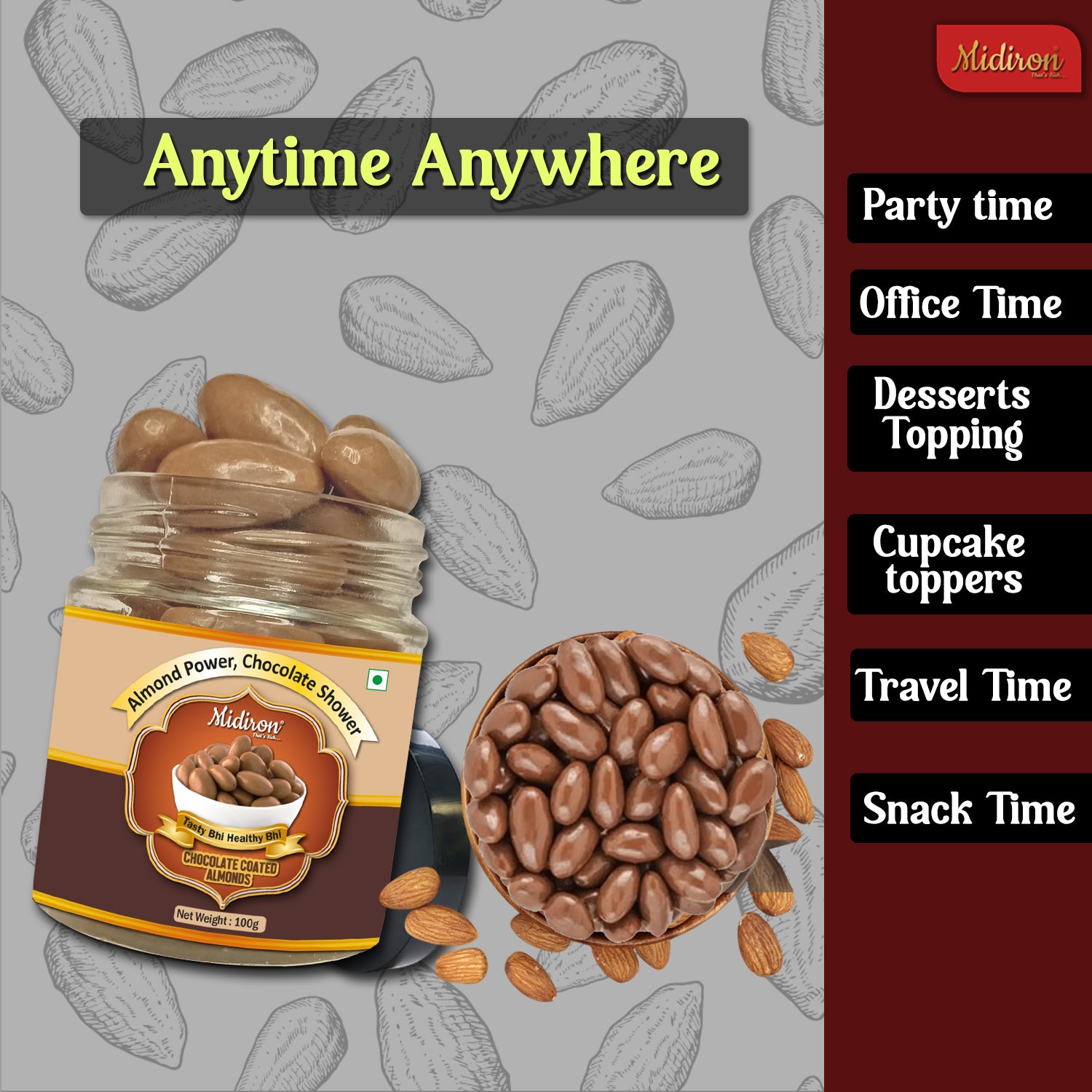 Chocolate covered almonds are trending as one of the most searched sweet snacks, thanks to their indulgent-yet-balanced profile. With rising interest in healthy snacking alternatives and giftable edibles, this product sits right at the intersection of health and taste. It appeals to all age groups—from kids to grandparents—and is being widely searched online as a Rakhi gift idea, Bhai Dooj treat, birthday snack, and snack box essential.