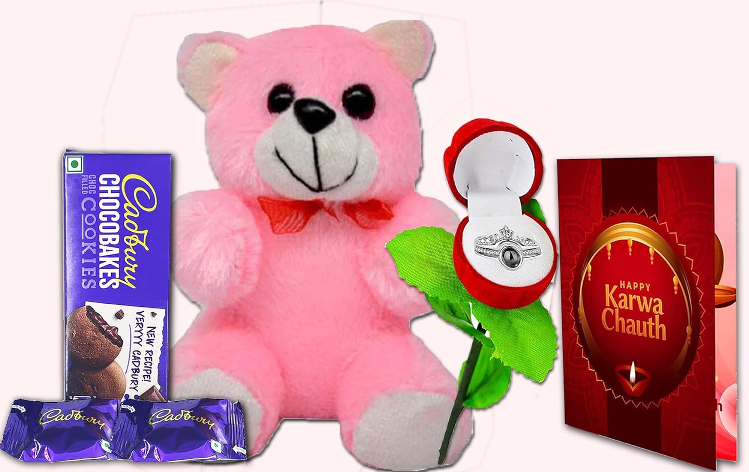 Karwa Chauth is steeped in age-old customs — but that doesn’t mean your expression of love has to be old-fashioned. This Complete Karwa Chauth Gift Set blends tradition with tenderness, modern romance with cultural depth. Imagine her joy when she opens this box after a long day — finding her favorite cookie, a pink heart to hug, a note filled with love, and a magical ring that expresses what even words can’t.