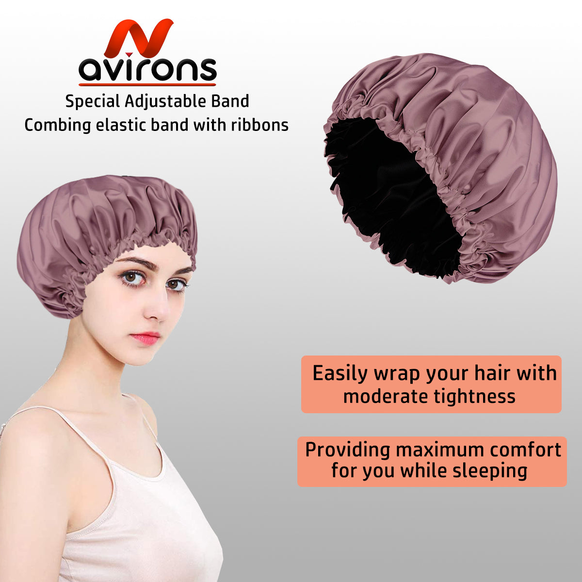 2. Adjustable Fit: Features an adjustable drawstring or elastic band for a comfortable, secure fit that stays in place all night, perfect for all head sizes.