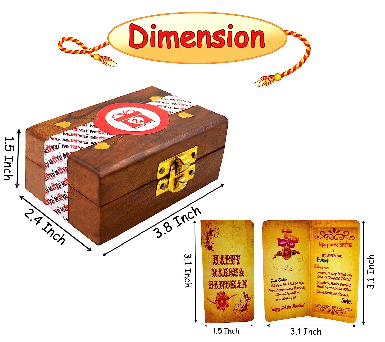 From the designer rakhi safely kept in its elegant wooden box, the delightful choco almonds, your heartfelt message on the printed card, to the sacred rituals completed with roli & chawal — every element of this hamper works together to create an unforgettable Raksha Bandhan experience.