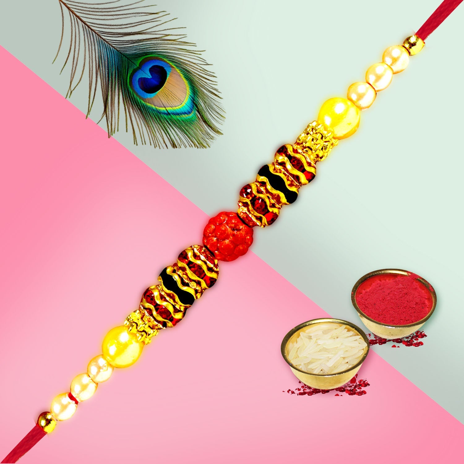 Presented in a beautifully designed wooden box, this rakhi transforms into a cherished keepsake. The wooden box not only protects the rakhi but adds a timeless, elegant touch that elevates its significance. It becomes a lasting reminder of the love and memories shared between a brother and sister.