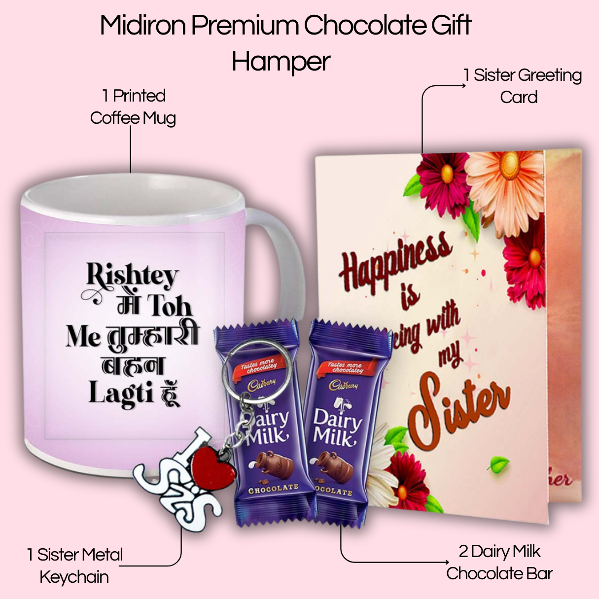 Make every celebration unforgettable with this beautifully curated Mug, Chocolate, Card, and Keychain gift combo—a ready-to-gift hamper that combines emotion, utility, and sweetness in one thoughtful package. Whether you're looking for a birthday gift for mother from daughter, a romantic gift hamper for your wife, a surprise gift for girlfriend, or a meaningful present for your sister, this versatile combo is perfect for all ages and occasions. Designed for those who want an affordable, meaningful, and premium-quality gifting option, this combo is an excellent choice for birthdays, anniversaries, Valentine's Day, Raksha Bandhan, Friendship Day, or even a just-because gesture.