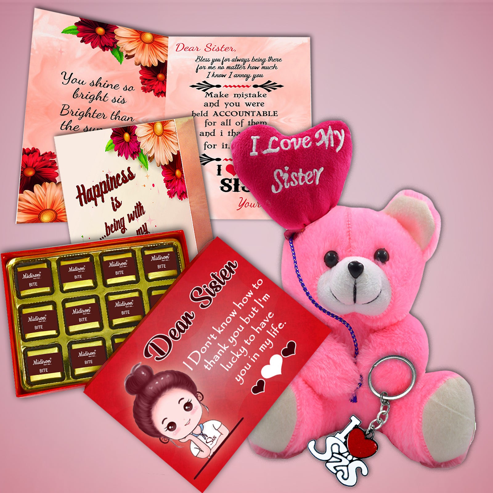 Raksha Bandhan is all about celebrating your unique bond with your sister. Whether she’s your little sibling or your best friend, she deserves something that brings a smile to her face. This Rakhi gift combo with teddy, chocolates, card, and keychain has been thoughtfully assembled to deliver delight, emotion, and practicality in one festive package.