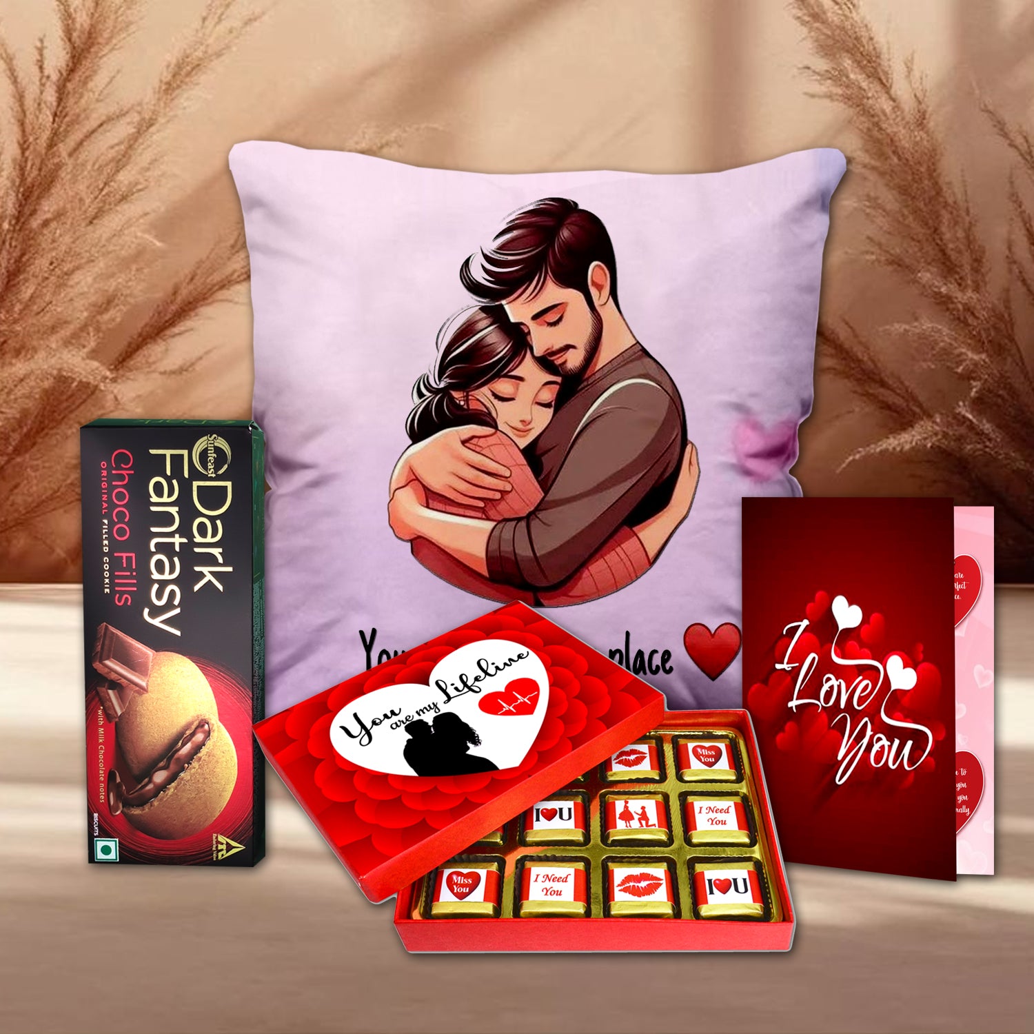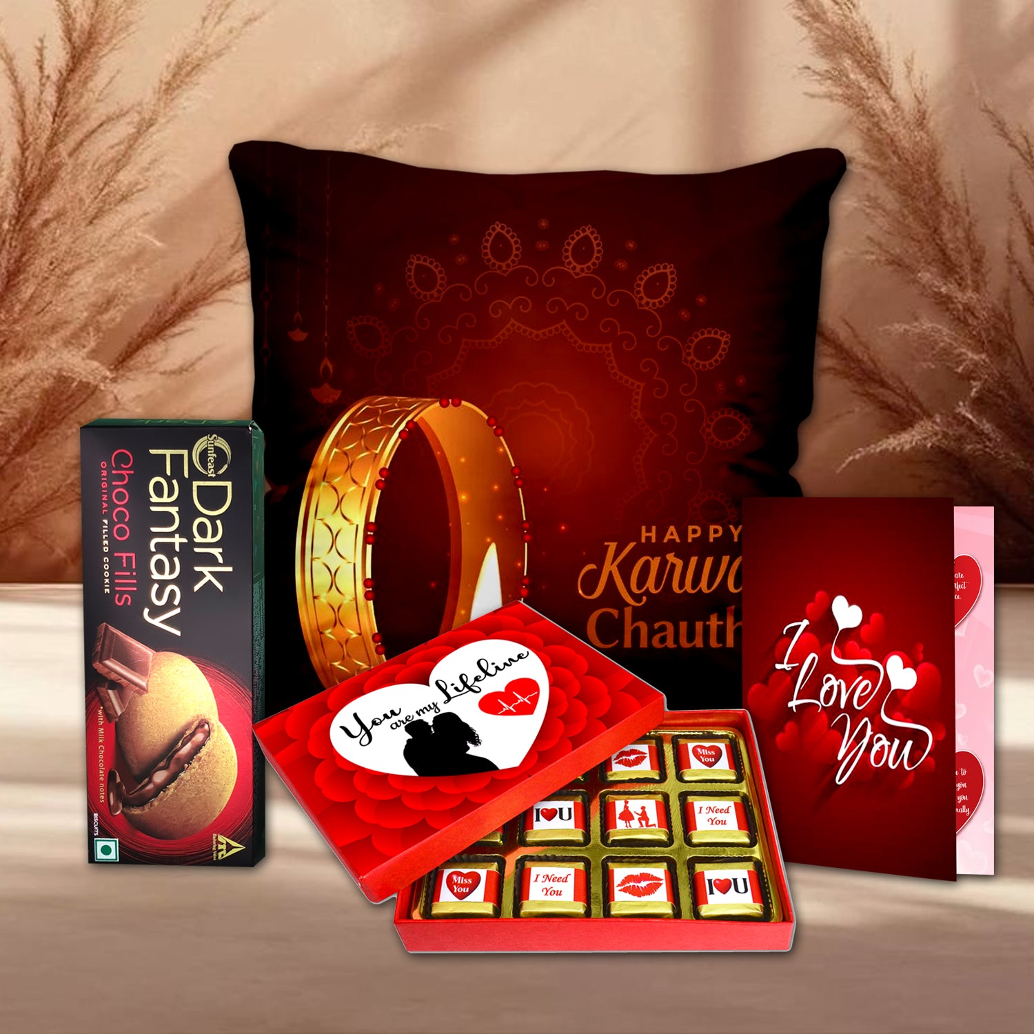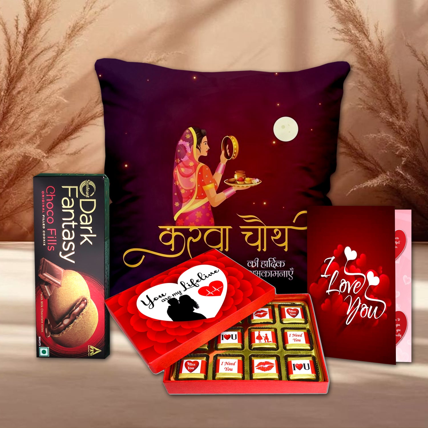 Unlike generic gifts, this combo reflects thought and attention to detail. The cushion suits modern home aesthetics, the chocolate box matches her gourmet palate, the cookies are satisfying and rich, and the printed card completes the emotional story. Together, these items form a well-rounded Karwa Chauth surprise gift for wife with sweets and cushion that she’ll love and remember.