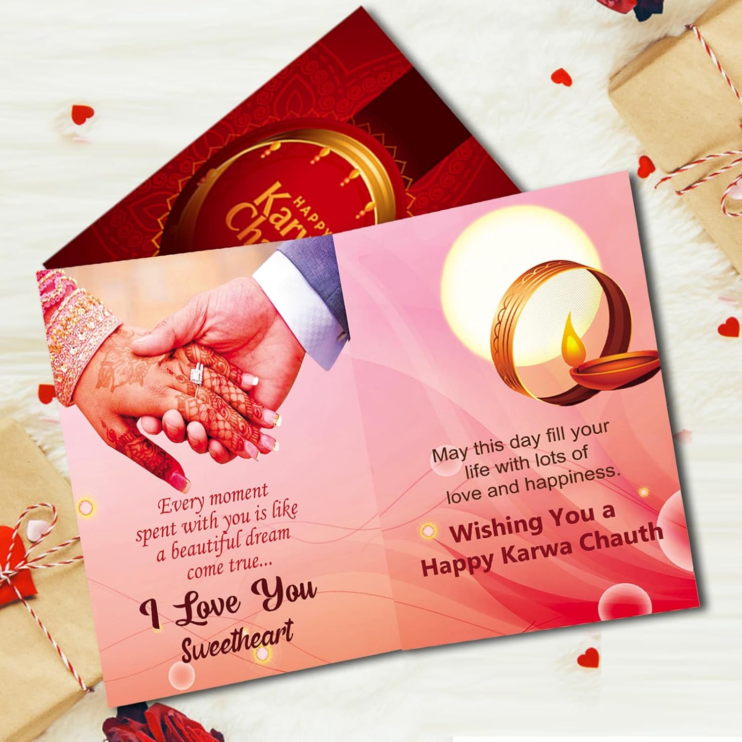 Karwa Chauth is not only about fasting or rituals — it’s about emotional connection. This card is your chance to show her that you see her, you value her, and you’re thinking of her every moment. It’s perfect for modern husbands who want to celebrate the occasion not just with gifts, but with real, meaningful emotion.