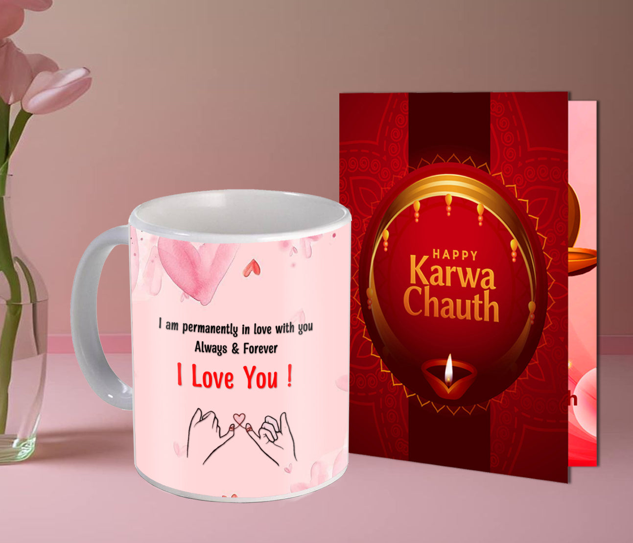 Make this Karwa Chauth memorable with a heartwarming combo that brings together a beautifully printed coffee mug and a charming printed Karwa Chauth greeting card. Whether you're gifting your wife, fiancé, or girlfriend, this elegant yet emotional gift set adds a personal touch to the day of love and tradition. Thoughtfully designed for modern celebrations, this combo is perfect for expressing heartfelt emotions and strengthening the bond of love.