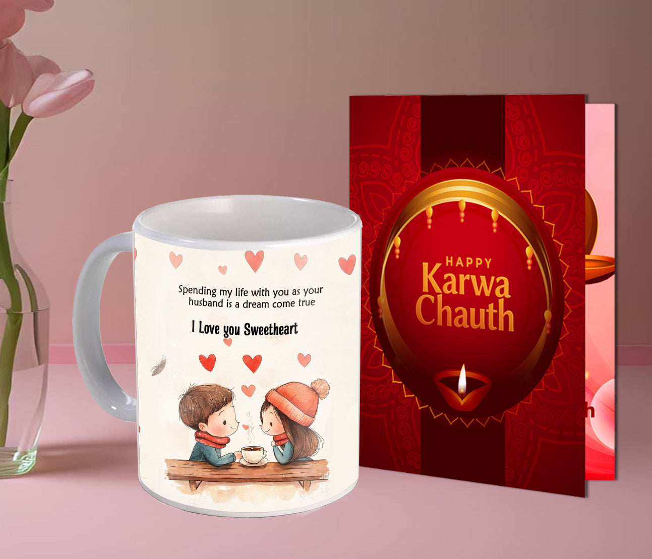 From sargi to moonrise, your presence is felt through thoughtful gifts. And when the fast ends, and the rituals conclude, this printed coffee mug and printed Karwa Chauth greeting card combo continues to speak volumes of love, day after day.