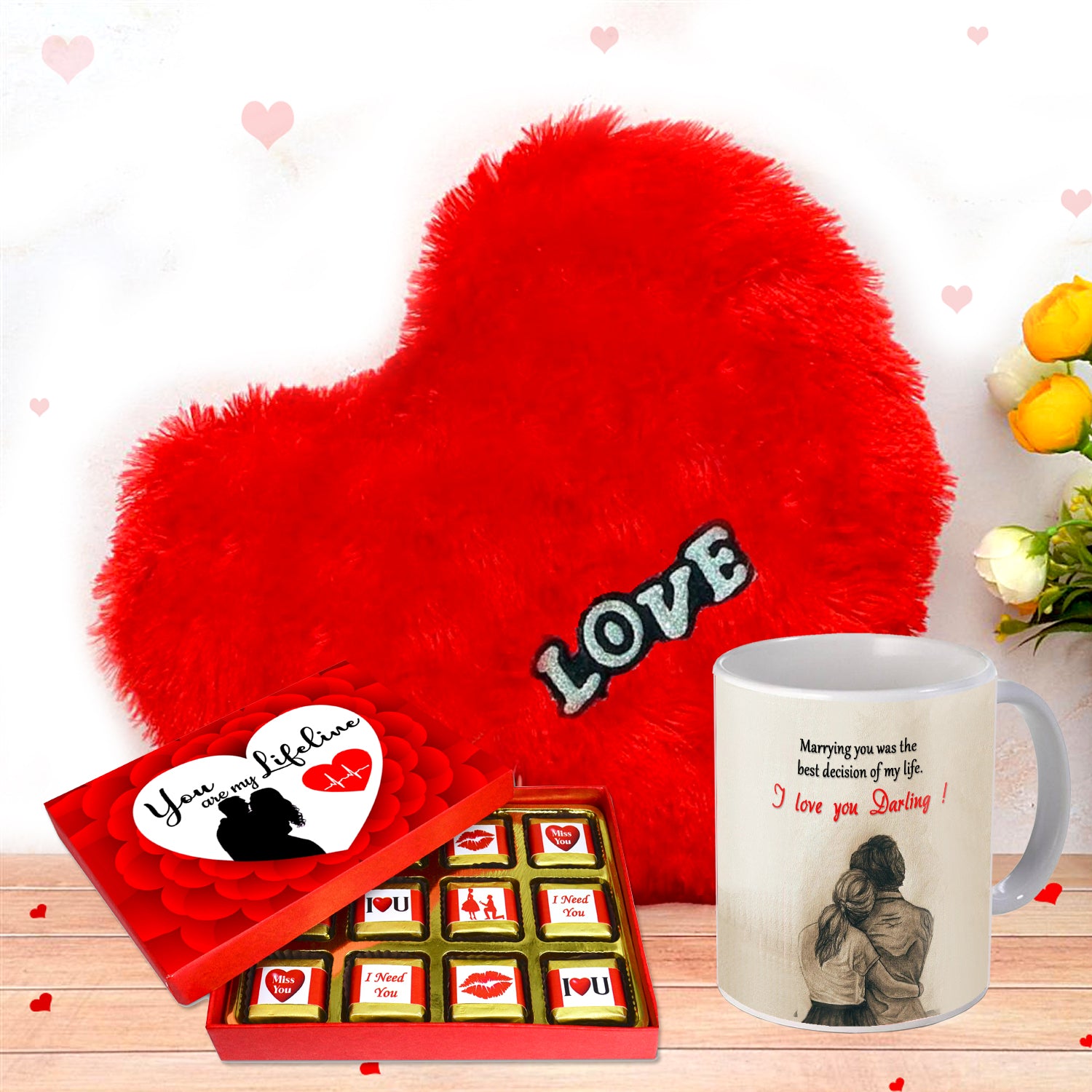 Even if you're miles apart, sending this Big Red Heart, Chocolate Box, and Printed Coffee Mug combo to your loved one is a wonderful way to feel connected. It brings emotions closer, bridges distance, and adds joy to the festival’s spirit.