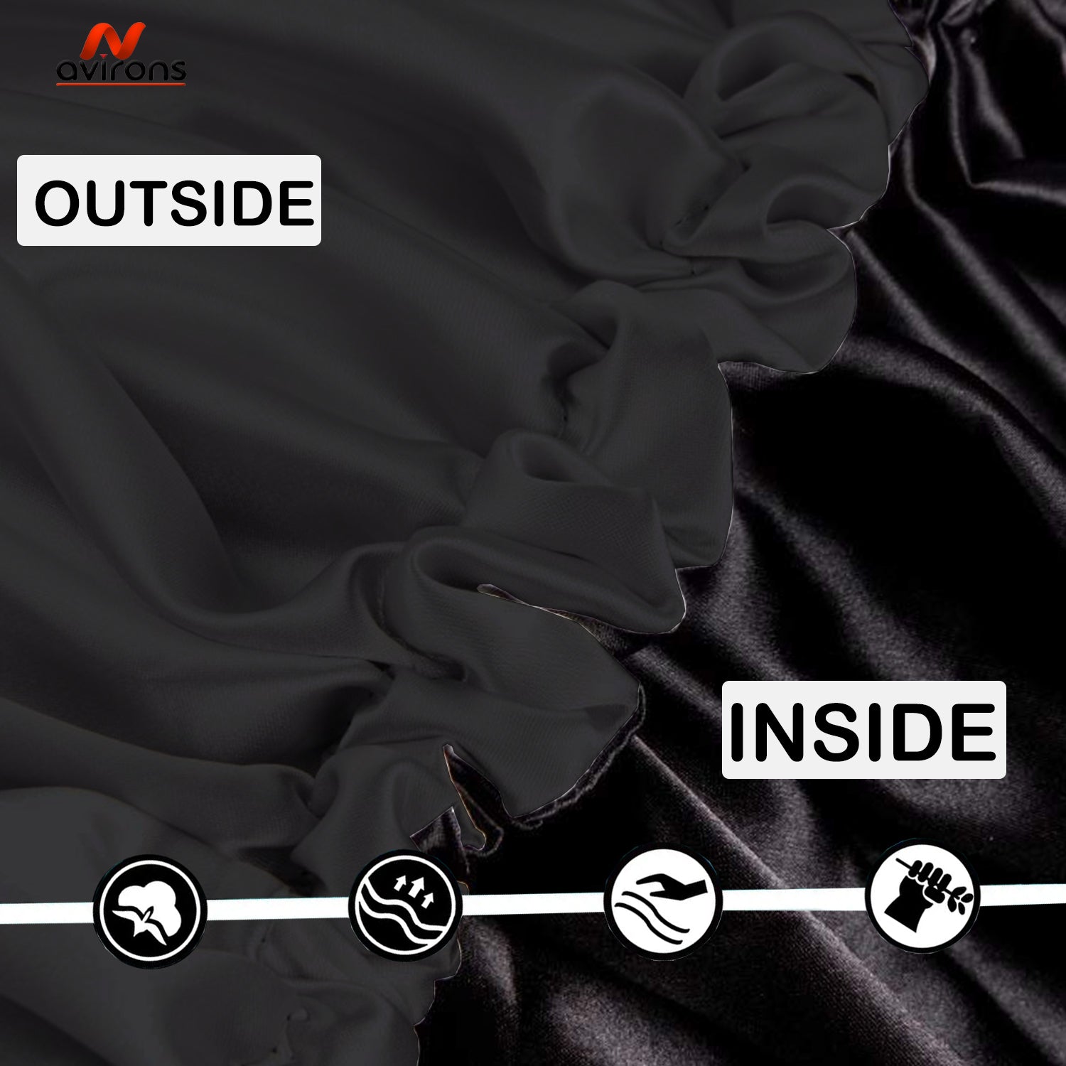 Premium Satin Silk Material: Crafted from high-quality satin silk, our sleeping cap is soft to the touch and gentle on your hair. This luxurious fabric helps reduce friction, minimizing breakage and frizz while keeping your locks looking healthy and shiny.