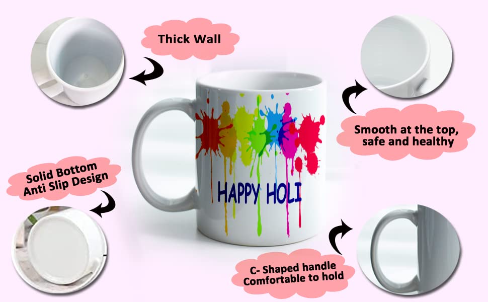 ☕ Enjoy a Festive Drink – Sip from the cheerful Holi-themed mug.