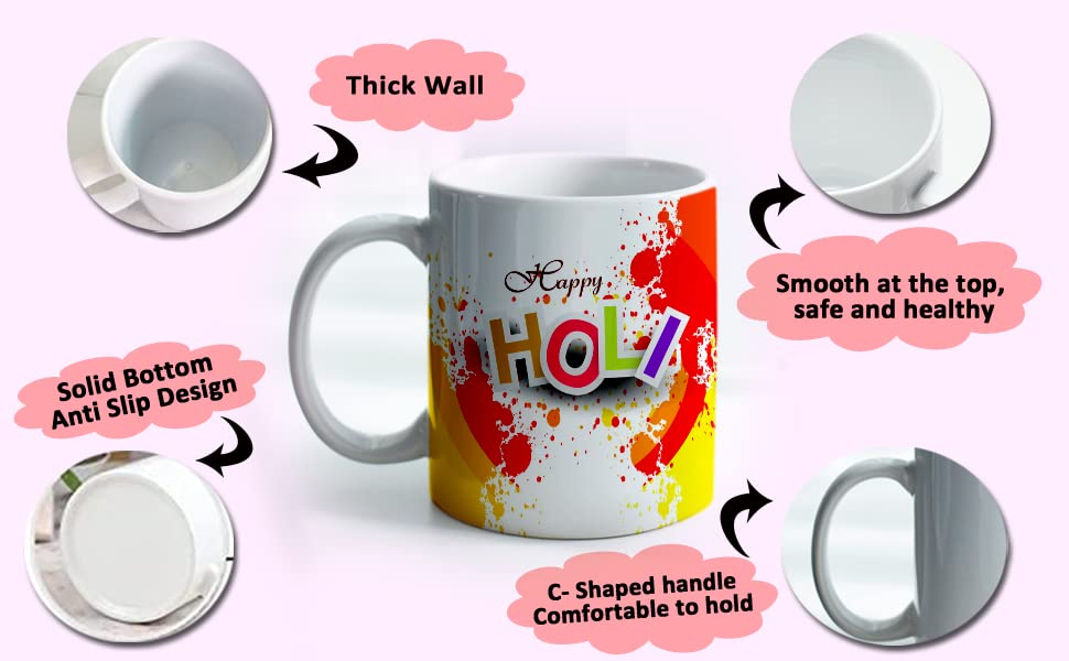 ☕ Enjoy a Warm Drink – Celebrate Holi with the cheerful coffee mug.