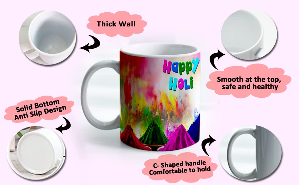 Enjoy your favorite beverage in a beautifully designed Holi-inspired coffee mug, perfect for adding a festive touch to your celebrations.