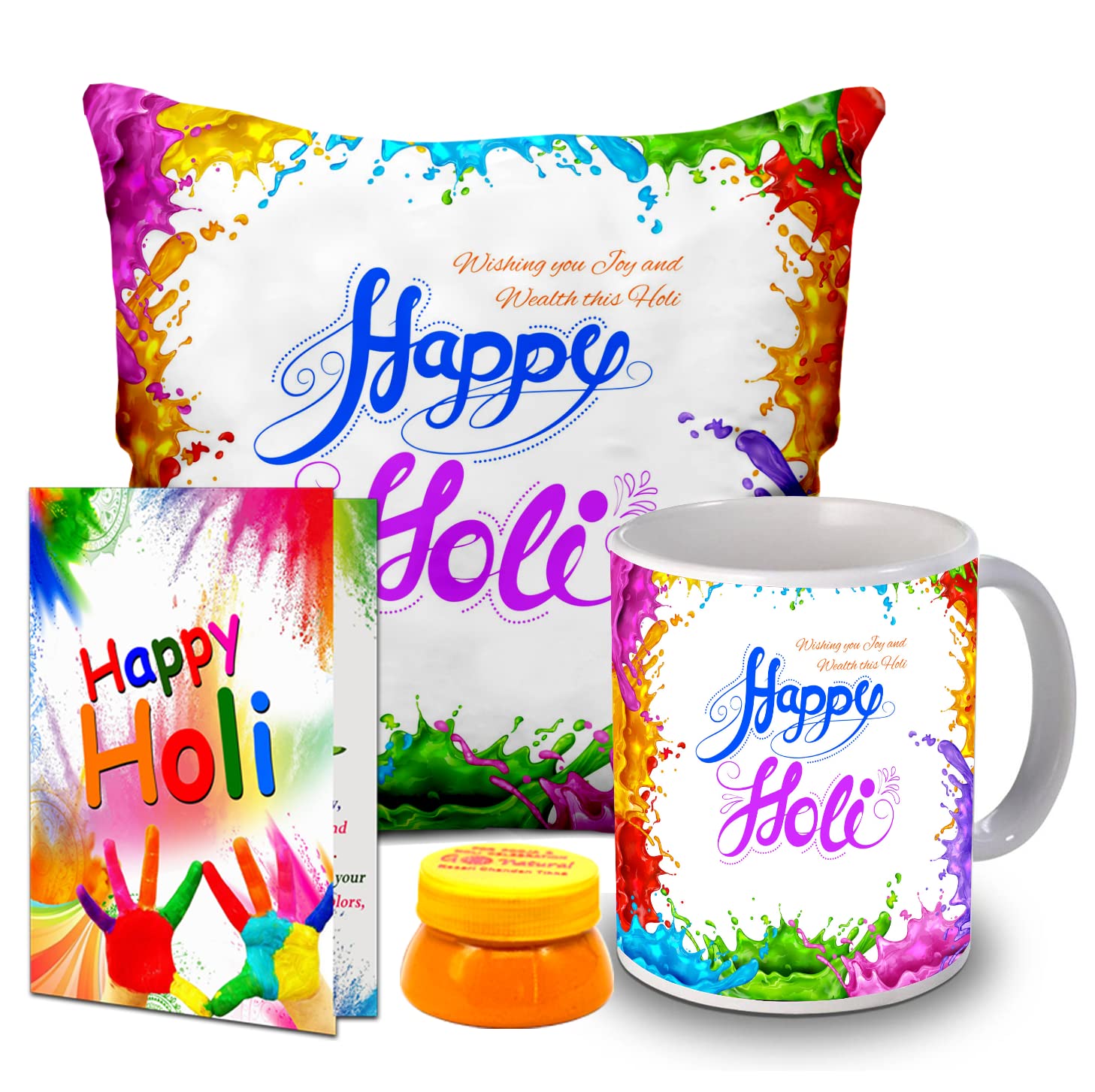 Celebrate Holi with joy, love, and meaningful gifts! Whether you’re near or far, our Printed Cushion, Printed Coffee Mug, Greeting Card & Chandan Tilak set will bring smiles and warmth to those you care about.