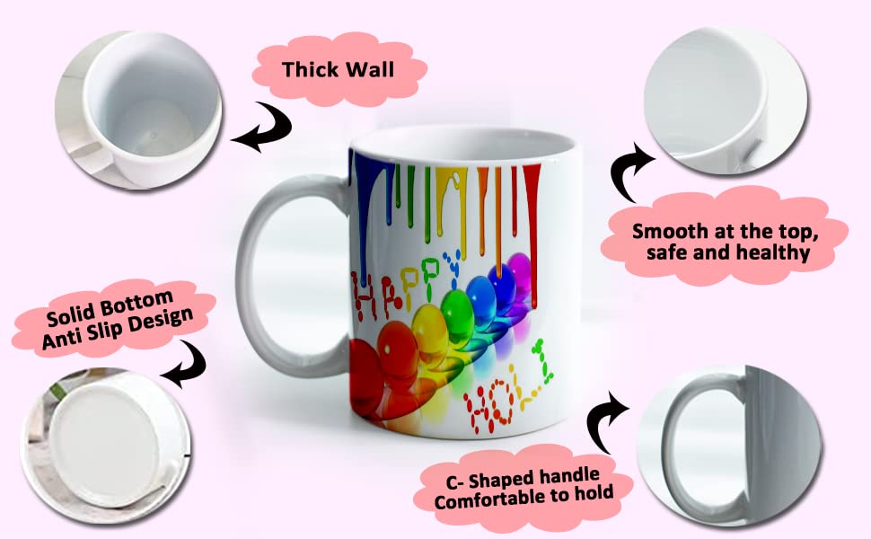 Enjoy your favorite beverage in a Holi-themed coffee mug, designed to make every sip more special.