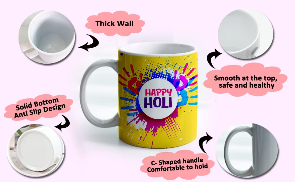 ☕ Enjoy Every Sip – Use the coffee mug to enjoy your favorite drinks in Holi style.