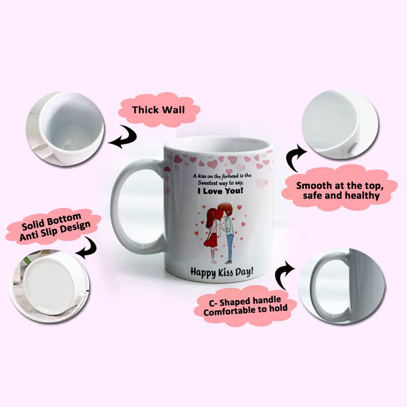 Made from premium ceramic, the Romantic Kiss Day Mug is designed to be both durable and stylish. Its sturdy build ensures it lasts for years, while the vibrant design remains bright and intact, serving as a lasting symbol of your love. This mug is perfect for combining practicality with heartfelt emotion.
