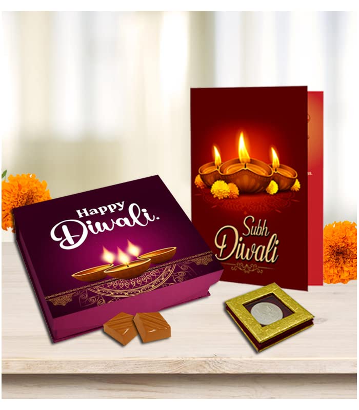 Diwali is about celebrating love, light, and togetherness. This gift set ensures your gesture is remembered long after the festival ends. The chocolates bring immediate delight, the printed card communicates your heartfelt wishes, and the silver coin symbolizes prosperity and good fortune. Together, they create a meaningful and memorable gift that embodies the essence of Diwali celebrations.