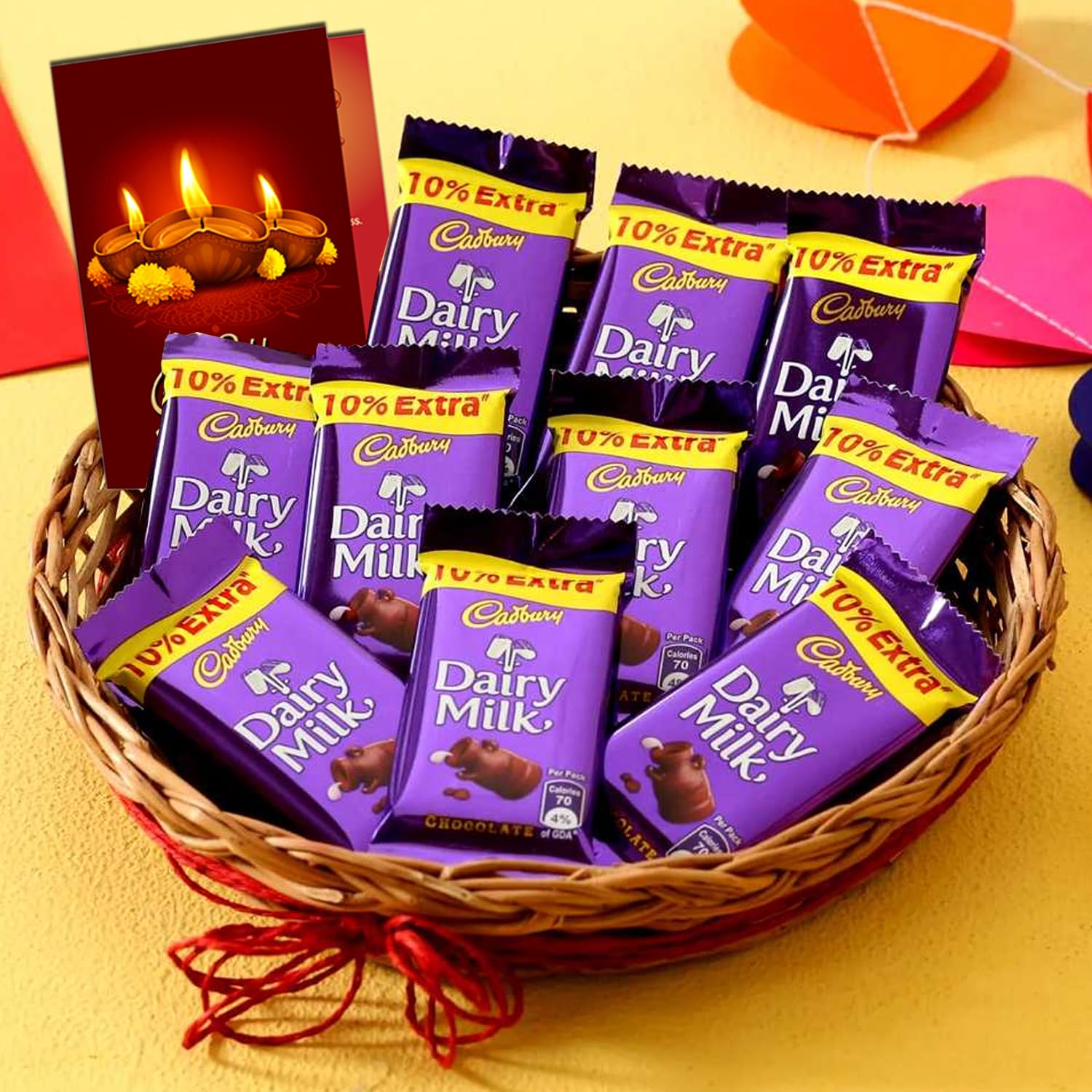 Diwali is all about sharing happiness and building connections, and chocolates have always been a symbol of love and warmth. Gifting this pack of 10 Dairy Milk bars ensures that each piece brings a moment of sweetness, perfectly suited for celebrating traditions with a modern touch. The addition of a thoughtfully designed Diwali greeting card adds a personal and emotional element, making this combo not just a sweet treat but also a meaningful gift. Whether it’s for close family members, friends, employees, or neighbors, this gift offers something that appeals to everyone.