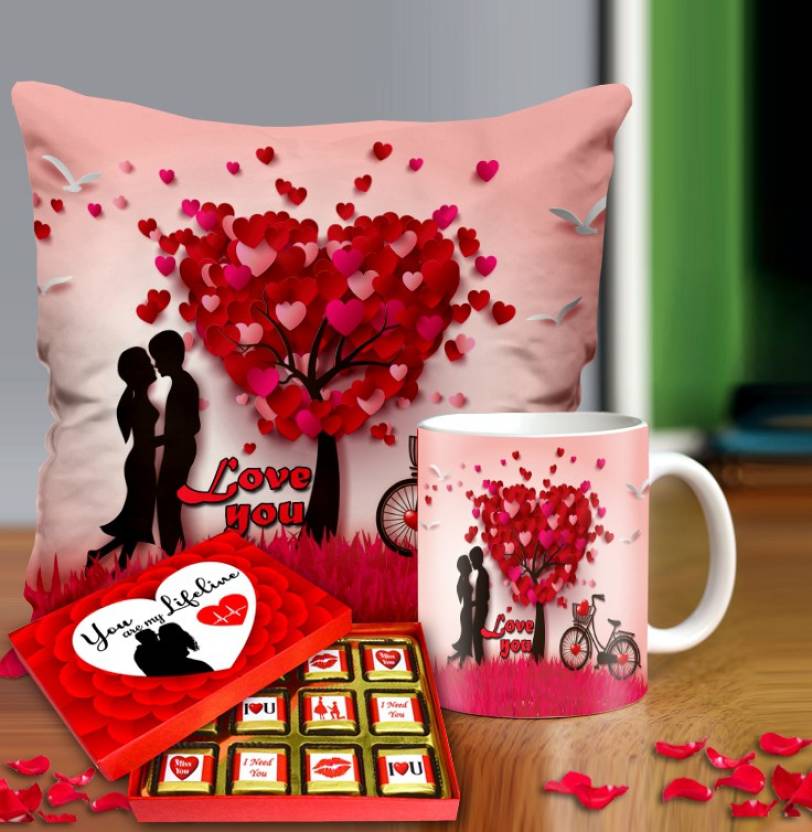 The aesthetic of this romantic combo strikes the perfect balance between elegance and emotion. The printed mug adds charm to her kitchenware, the cushion adds warmth to her space, and the chocolate box brings indulgence to her heart. It’s a thoughtful trio that caters to the tastes and preferences of women who value both sentiment and quality.