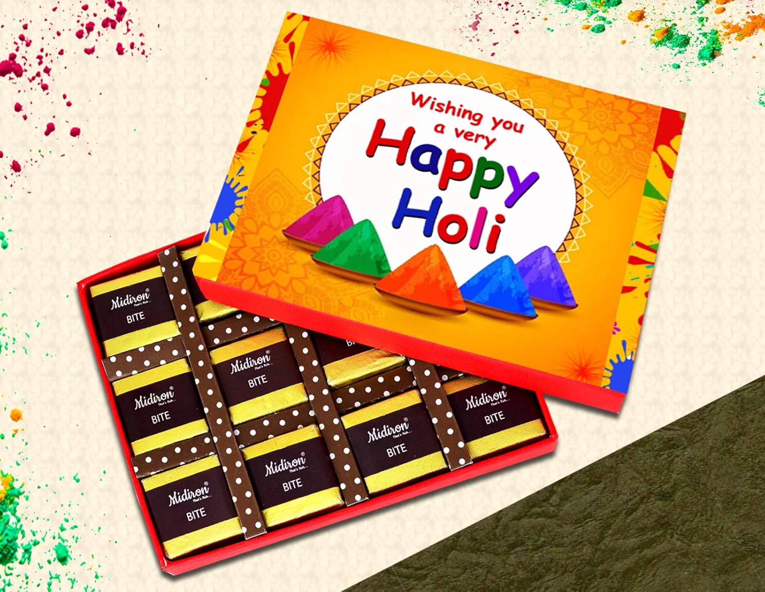 - Enjoy it yourself – Indulge in chocolates and take a moment to enjoy the heartfelt message that accompanies your Holi celebration.