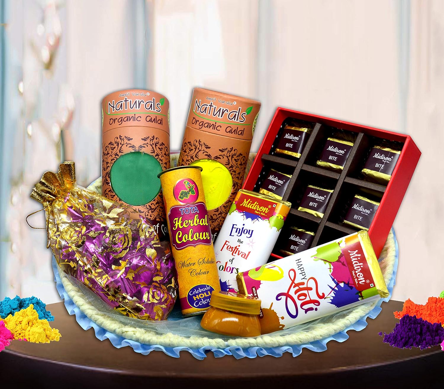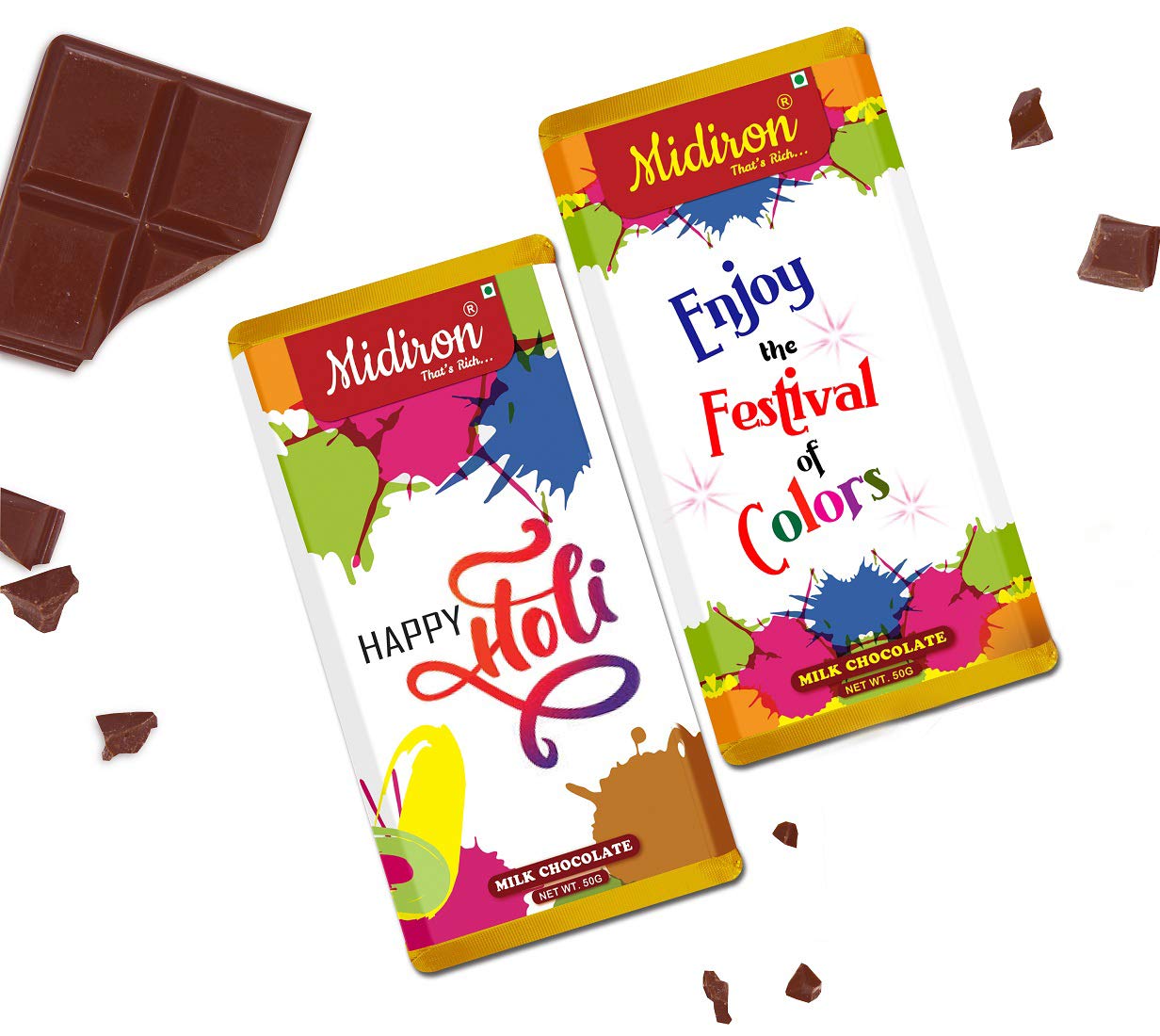 Holi Gifts Pack- Luxury Milk Chocolates - Herbal Colors- Chandan Tika - Water Color - Chocolate Bar (Multicolor)