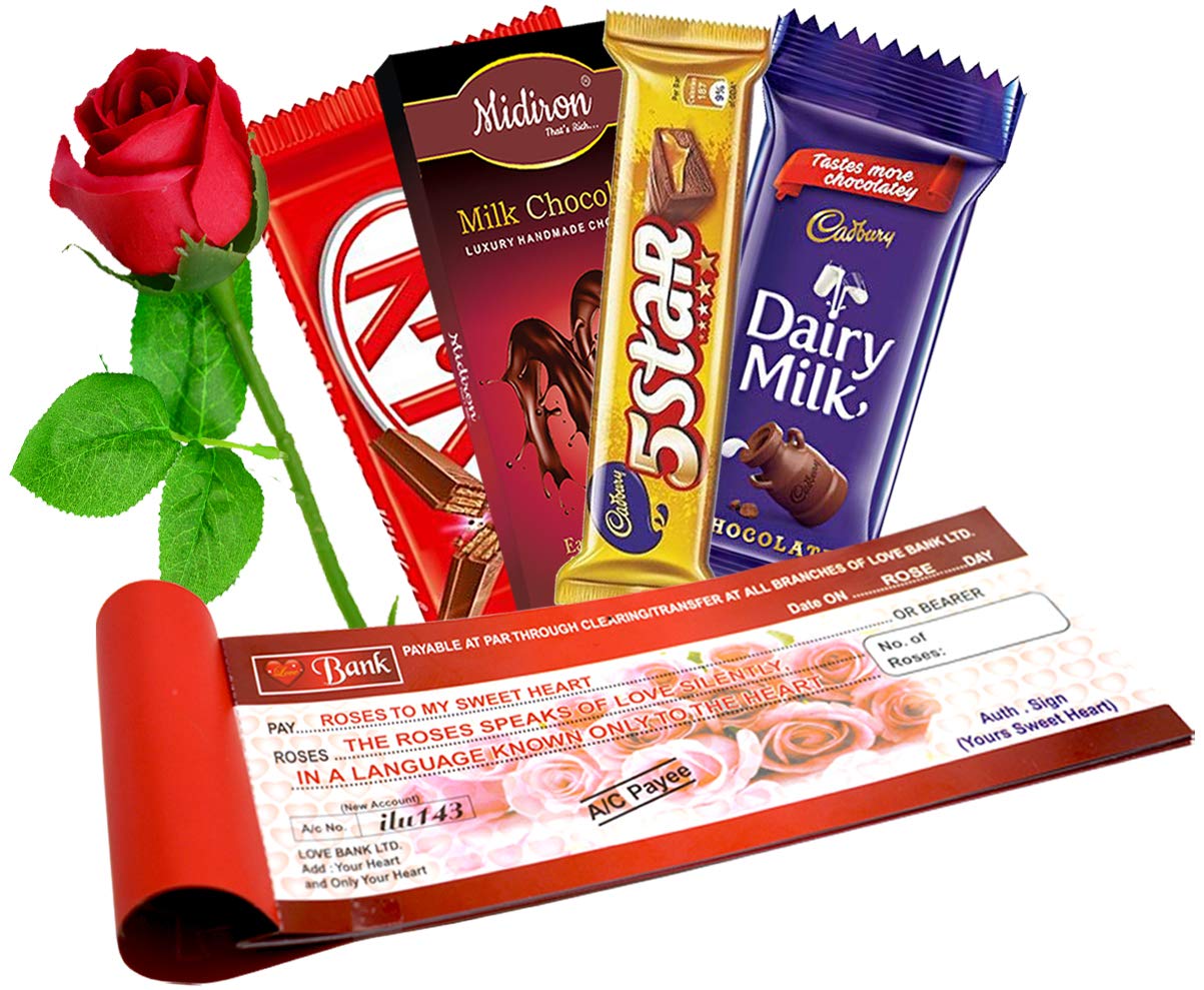 A Blend of Thoughtfulness and Romance: This trio combines classic romantic symbols like chocolates and a rose with the unique and practical inclusion of a cheque, reflecting your care on multiple levels.