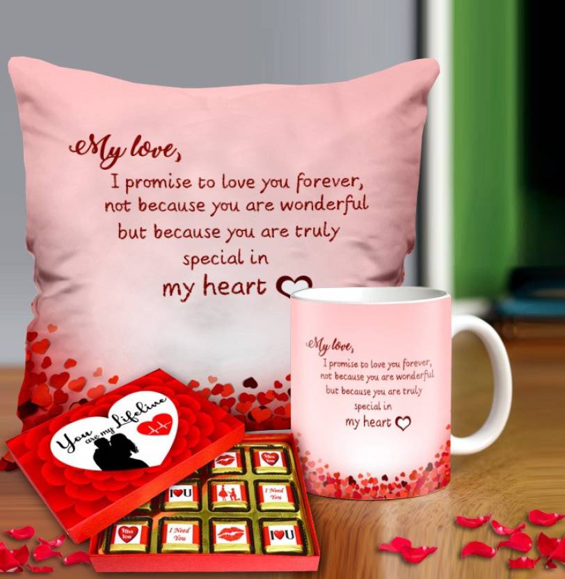 Contents: 3 Items (Chocolates, Mug, Cushion)