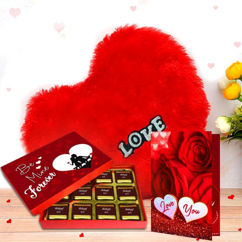 The beauty of the Card, Chocolate, and Red Heart Cushion Gift Set lies in its simplicity and thoughtfulness. Each component is carefully chosen to complement the others, creating a harmonious balance of emotion, indulgence, and comfort.