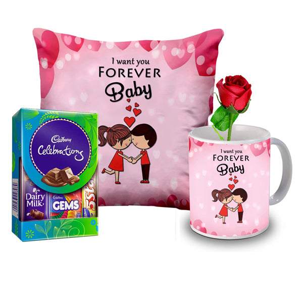 A Lasting Impression: While the chocolates create sweet, fleeting moments, the rose, mug, and cushion become lasting tokens of your love and care.