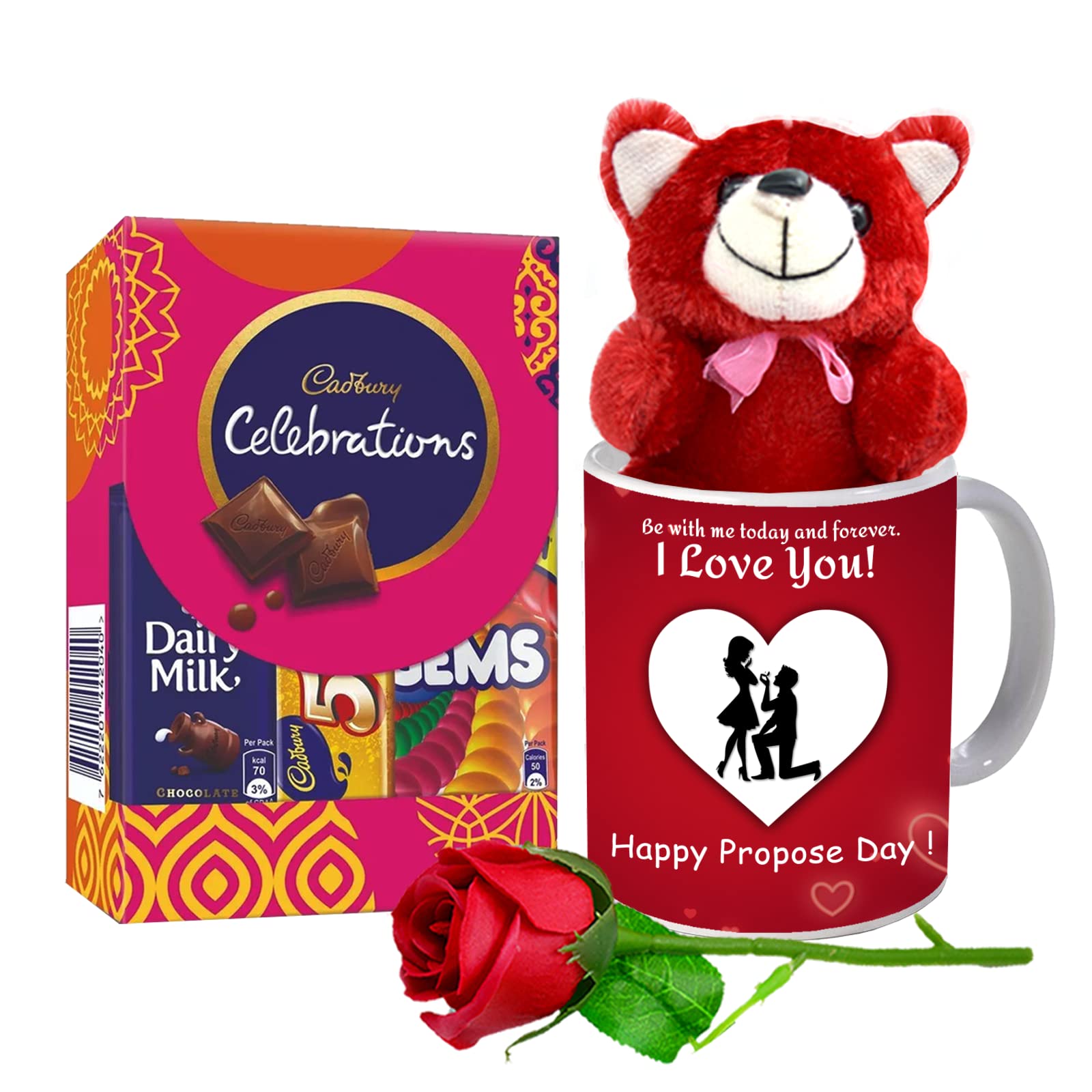 No Valentine’s gift is complete without a red rose. This combo features a lifelike artificial red rose that never wilts—symbolizing eternal love. It’s ideal for Propose Day, when emotions run high and a romantic gesture like this carries deep meaning. Your beloved can treasure this rose for years as a symbol of your unwavering bond.