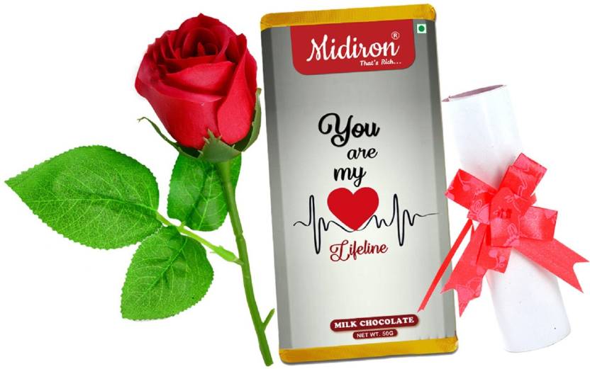 You are my lifeline Quoted Milk Chocolate Bar with Artificial Rose and Love Letter for Valentine Day