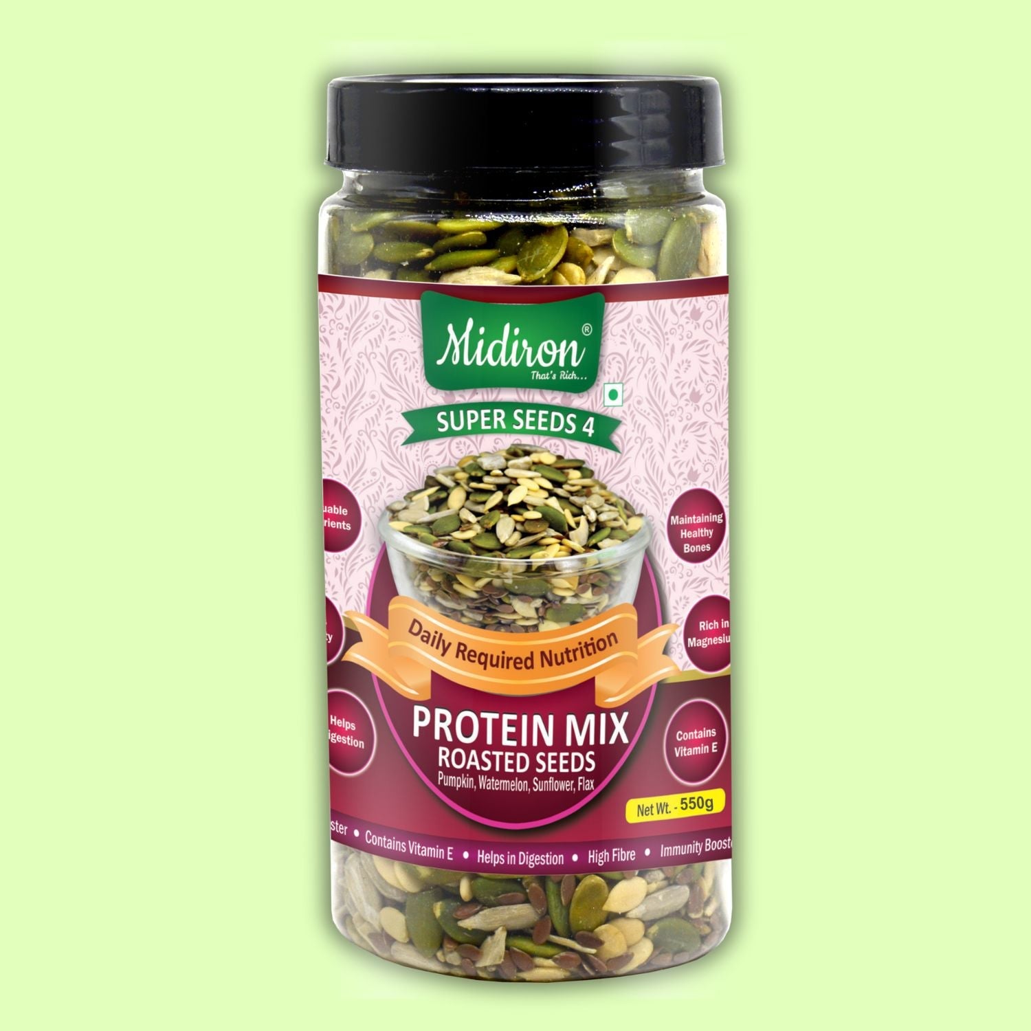 Discover the perfect balance of taste and nutrition with Protein Mix Roasted Tasty Seeds (550g). This nutrient-packed blend includes pumpkin seeds, sunflower seeds, flax seeds, chia seeds, sesame seeds, and watermelon seeds, all roasted to perfection to create a crunchy, satisfying snack. Designed for those with an active lifestyle, this mix delivers a high-protein, fiber-rich solution for muscle recovery, weight loss, and boosting energy levels.