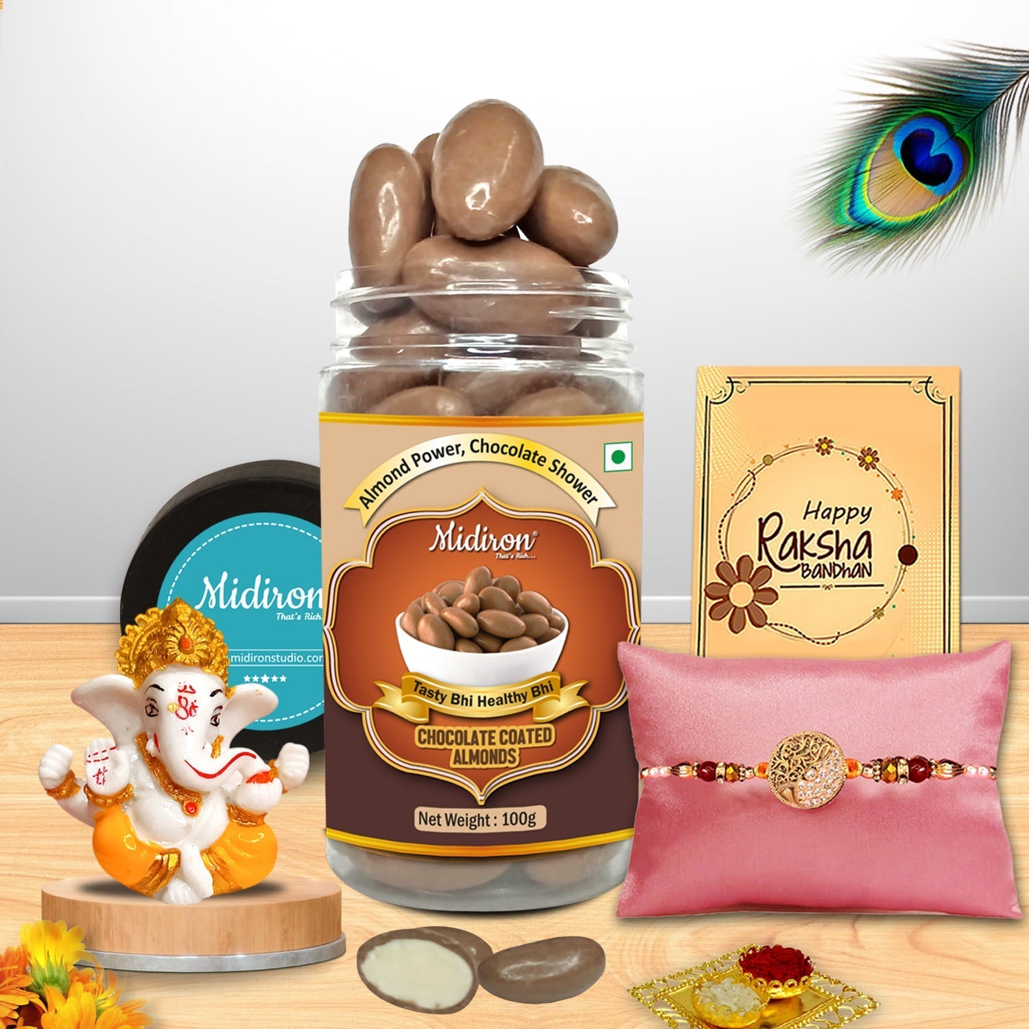 We take pride in curating Rakhi hampers that blend premium quality with cultural significance. Every item in this combo has been handpicked for its quality and presentation. From hygienic packaging of the chocolate almonds to the fine detailing of the Ganesh statue and the premium finish on the rakhi, you’ll notice the care we put into every element. Our products reflect not just tradition but thoughtful gifting — ensuring your Raksha Bandhan gift stands out.