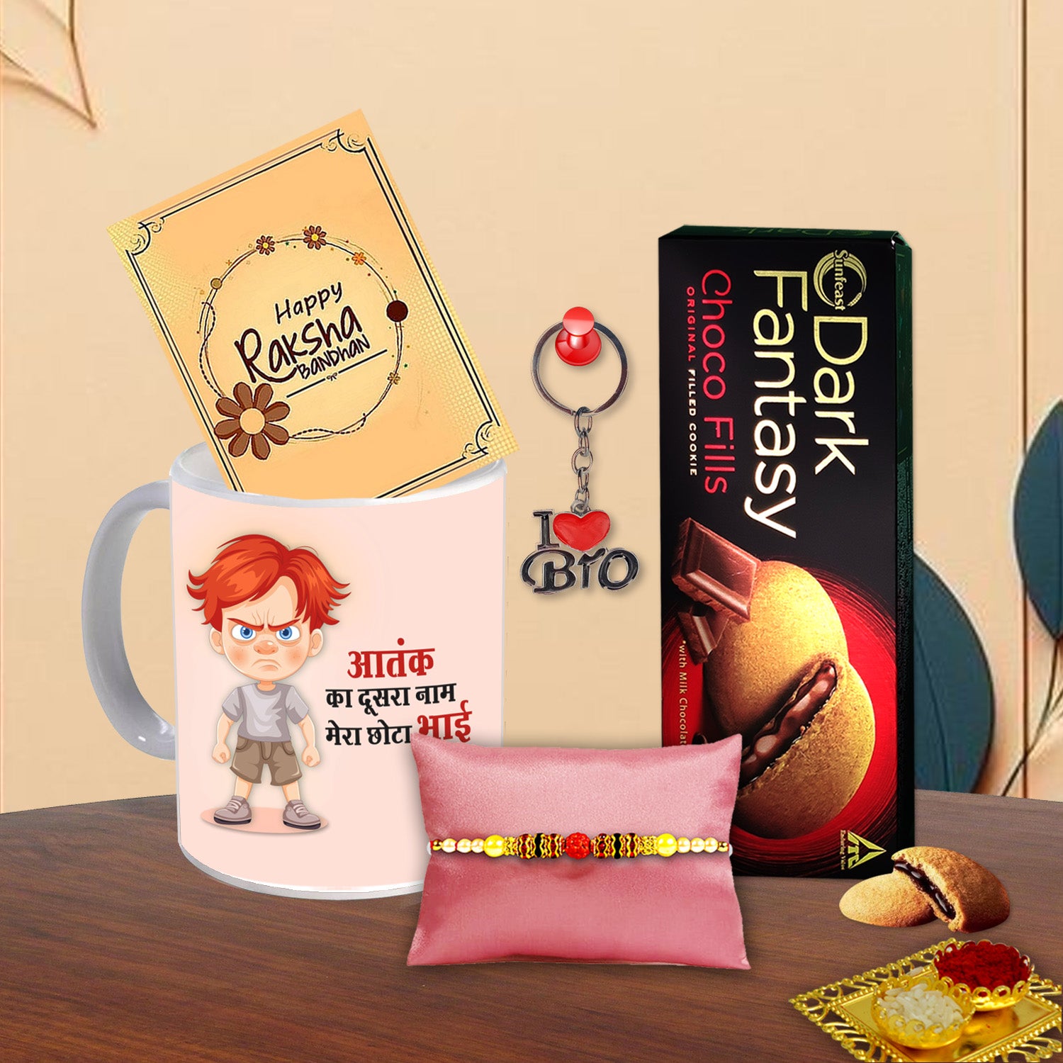 Even if you’re celebrating Rakhi across states or countries, this combo ensures your love reaches your brother in the most thoughtful way. The rakhi and roli-chawal allow the traditional rituals to be followed. The card speaks your heart, the cookies offer celebration, and the mug and keychain give a long-lasting emotional connection.