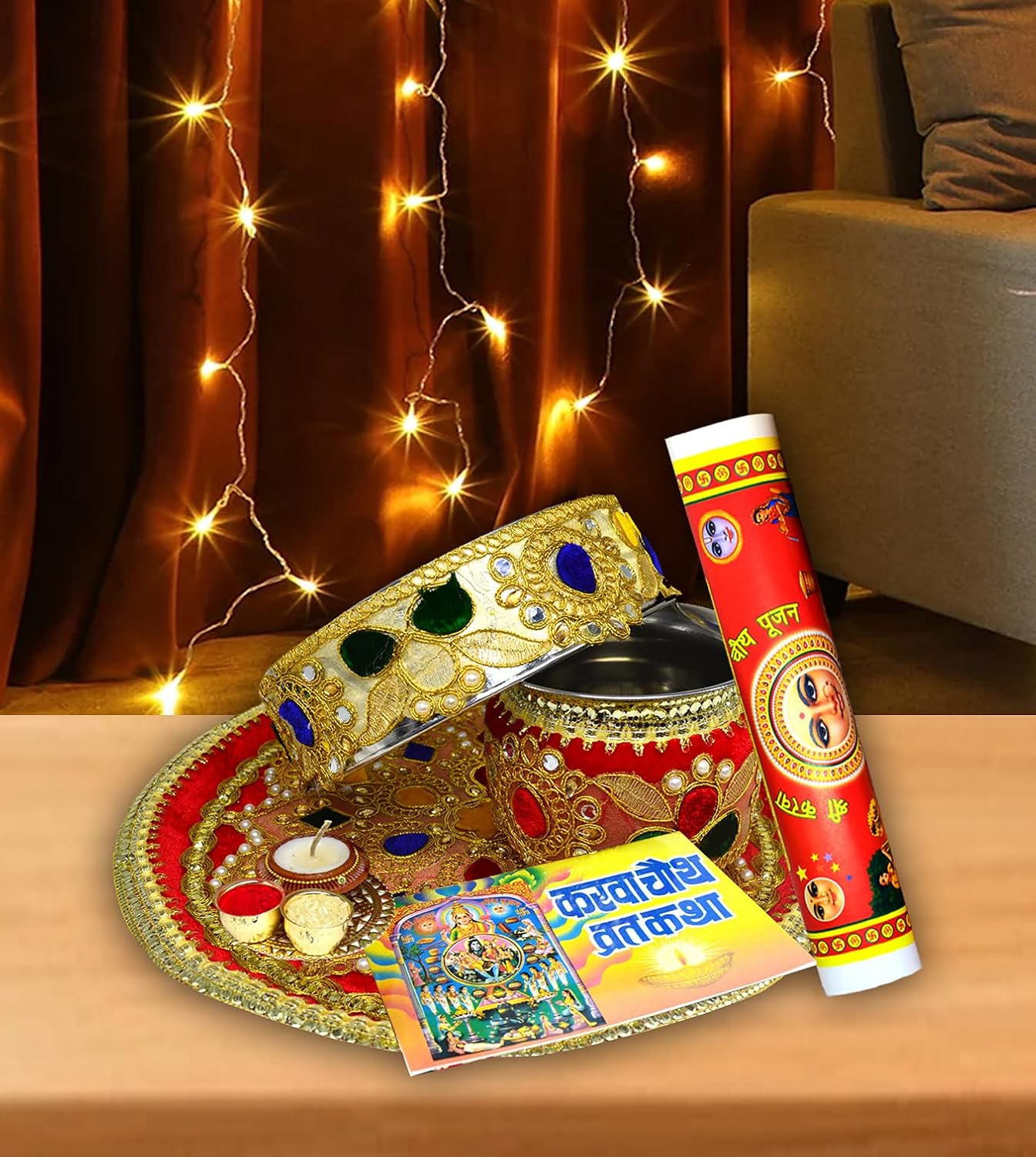 Puja Thali Set – An elegant, decorated thali to carry out the evening rituals. Perfect for traditional poojan during moon sighting.