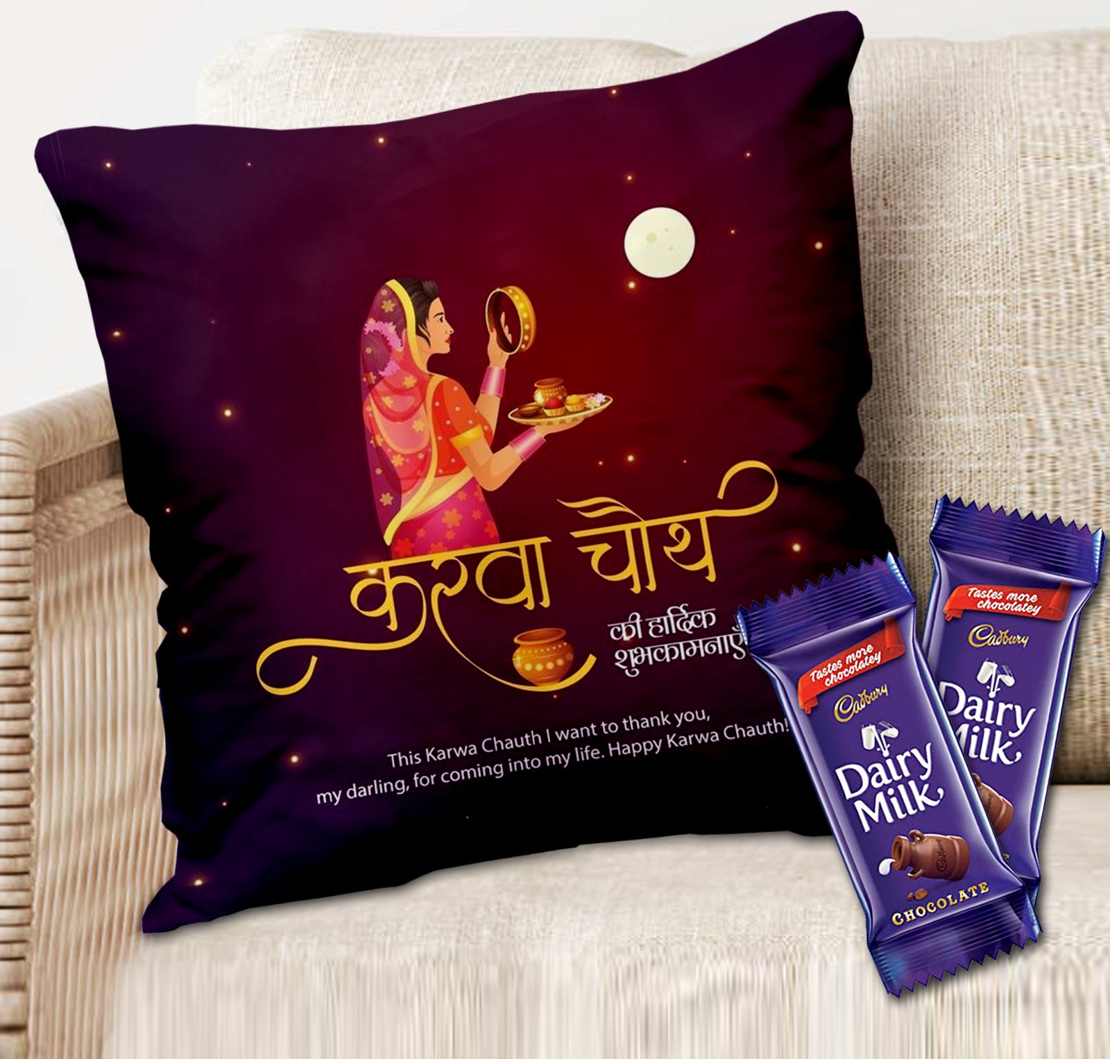 Karwa Chauth is a sacred day when your wife fasts for your health and longevity. Show your appreciation with the best gifts for your wife that match the sincerity of her devotion. Our cushion and chocolate bar gift is a compact yet heartfelt expression of that gratitude. This thoughtful surprise makes a beautiful gift on Karwa Chauth, enhancing the essence of the day. It’s not just a material present—it’s a reflection of your love and her significance in your life.