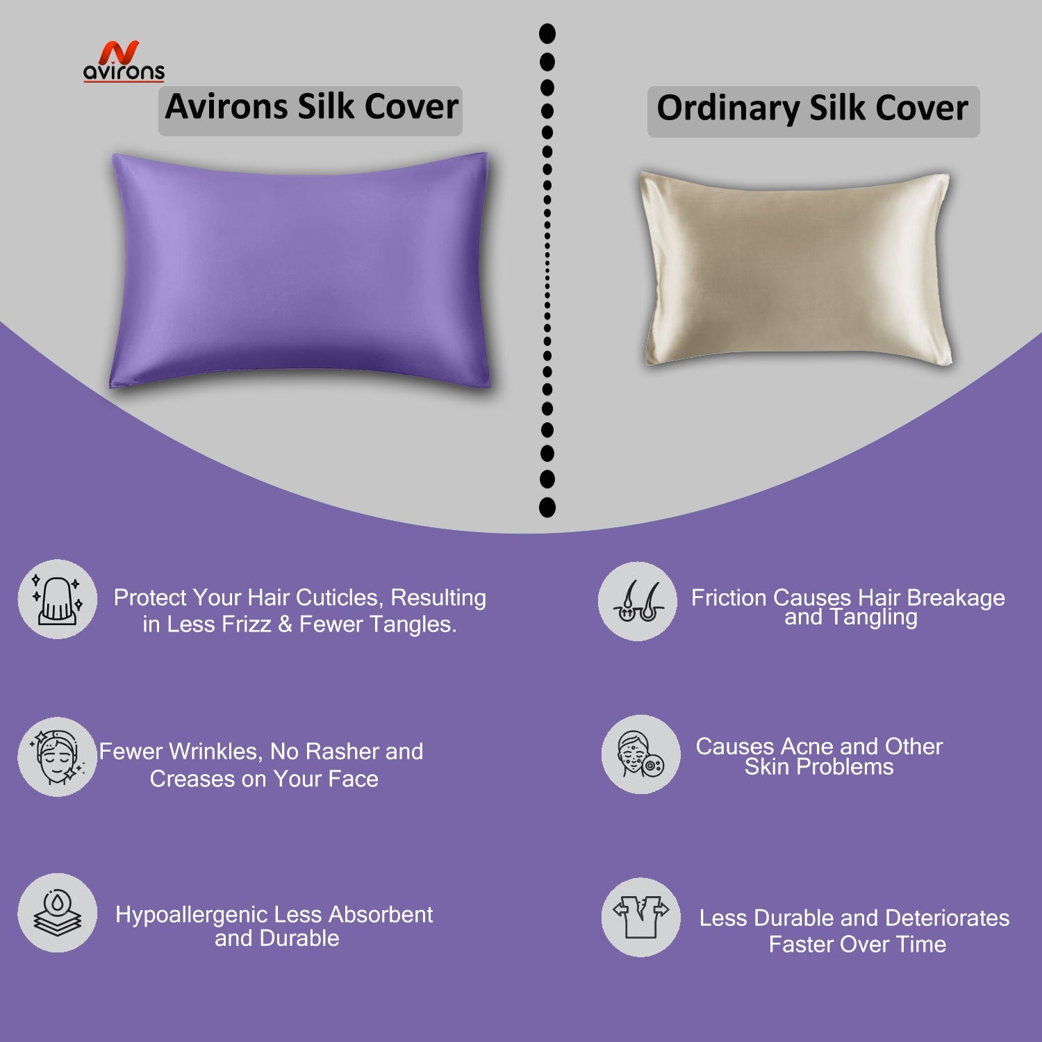 Hair & Skin Benefits: Reduces hair breakage, tangling, and frizz, while preventing sleep wrinkles and maintaining skin hydration.