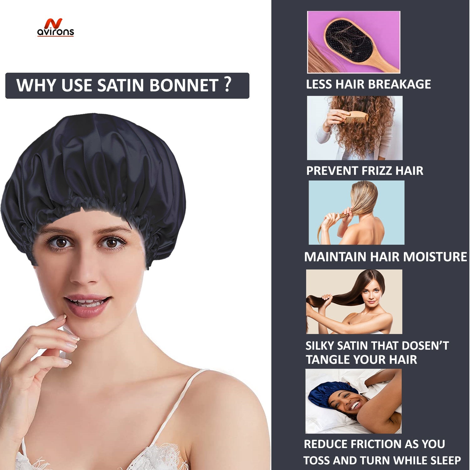 • Premium Satin Silk Material: Crafted from high-quality satin silk, our sleeping cap is soft to the touch and gentle on your hair. This luxurious fabric helps reduce friction, minimizing breakage and frizz while keeping your locks looking healthy and shiny.