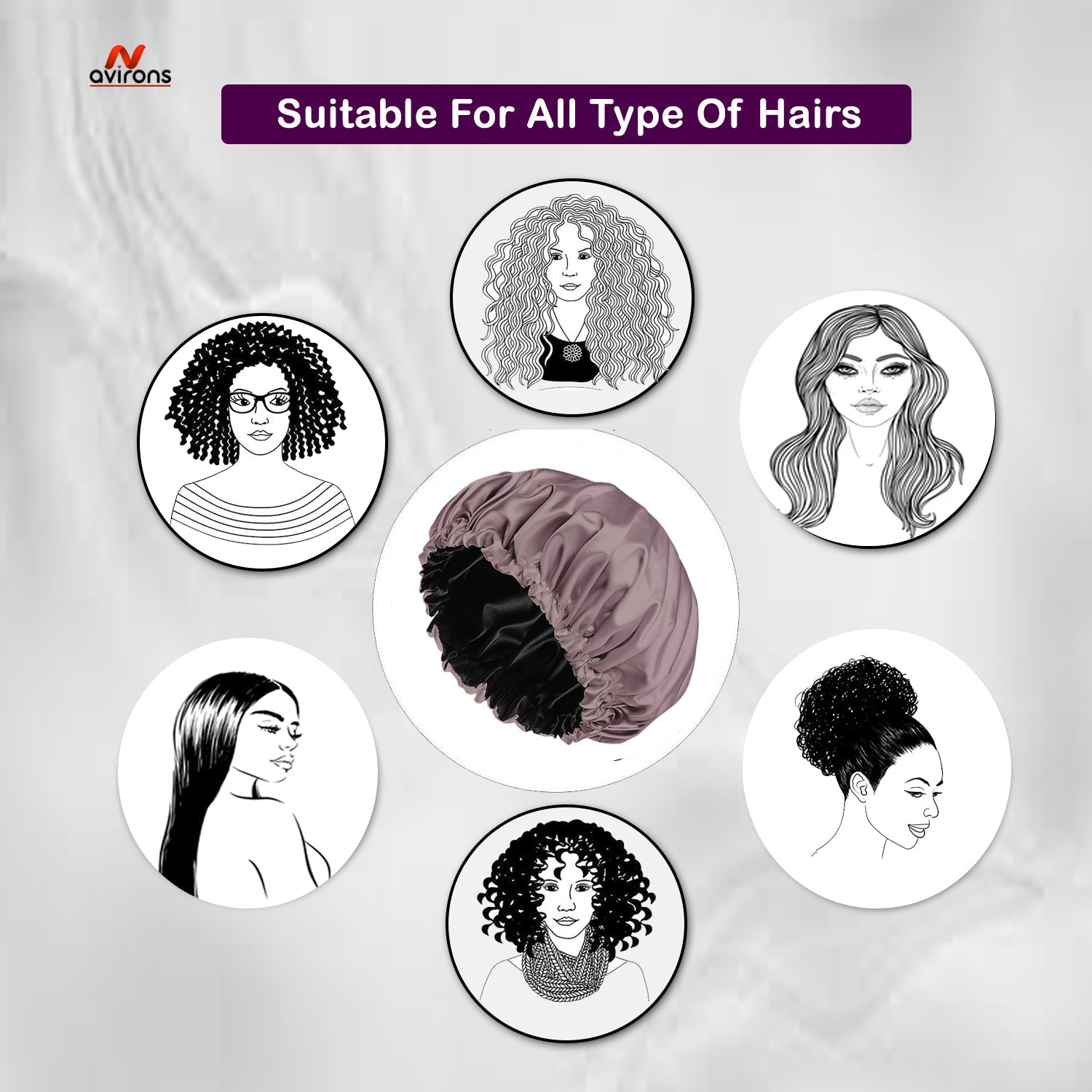 • Premium Satin Silk Material: Crafted from high-quality satin silk, our sleeping cap is soft to the touch and gentle on your hair. This luxurious fabric helps reduce friction, minimizing breakage and frizz while keeping your locks looking healthy and shiny.