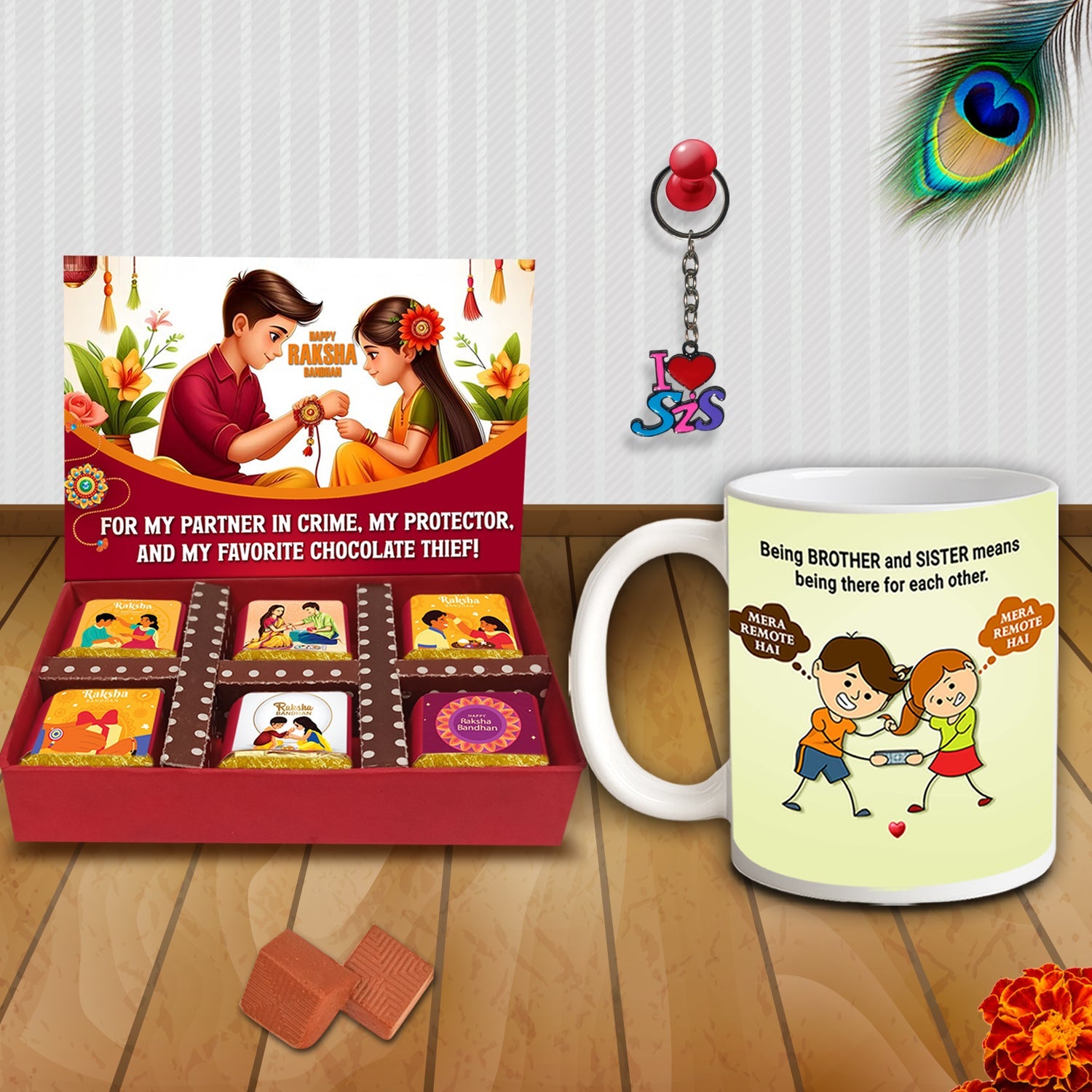 No celebration is ever complete without a touch of sweetness. That’s why this set includes a delicious chocolate box, filled with premium assorted chocolates that melt in the mouth and warm the heart. Every bite is a reminder of the moments you’ve shared—stealing candies as kids, fighting over dessert, and giggling over nothing.